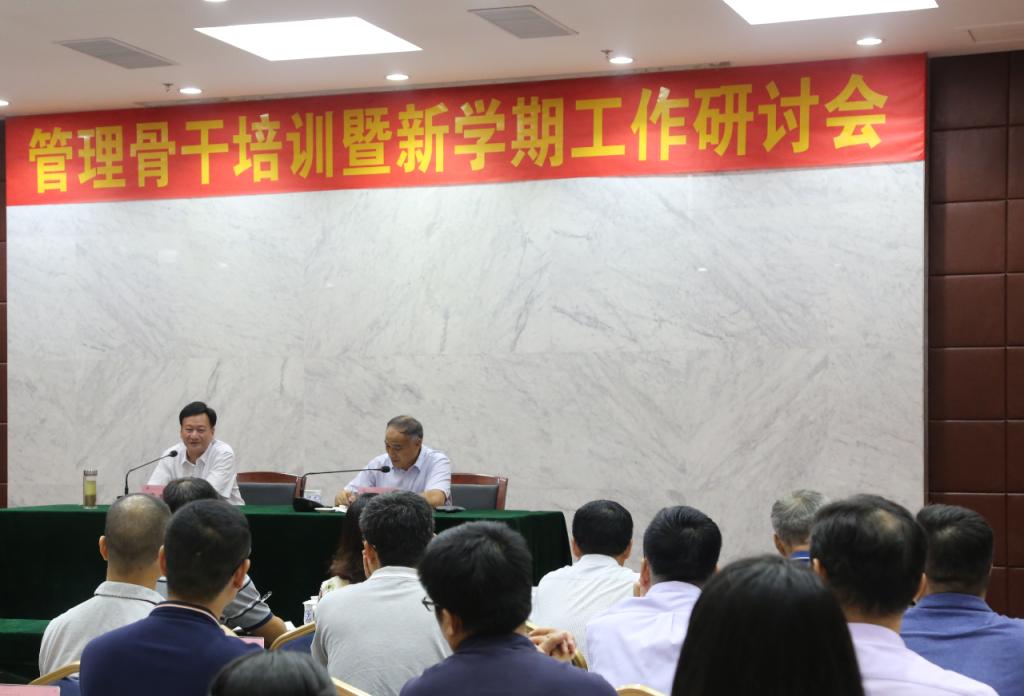 8月29-30日,学校在会议中心第二报告厅召开管理骨干培训暨新学期工作研讨会。执行董事、校管会主任张亚斌,校长蒋新华、党委书记杨清国等校领导出席会议。全体管理干部,教研室正、副主任等参加了会议。