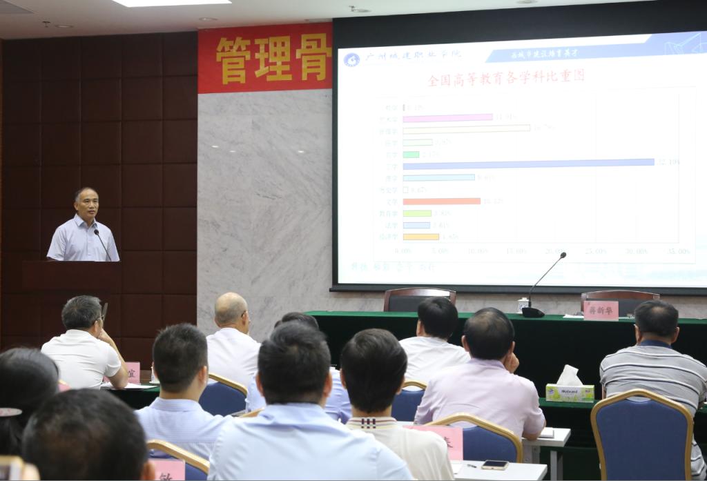 蒋新华校长作了题为《地方高校发展之路》的专题报告,他以中国高等教育发展态势为背景,阐述了新时代地方高校发展的路径与对策。并指出学校现阶段的工作,将以“一个中心、‘两轮驱动’、三大工程、四项保障”为总体思路,塑造具有城建文化特色,传承城建精神的“学在城建”教育品牌,实现“创强晋优争一流”的目标,筑牢升本发展基础。他在主持总结会时,还就学校学习贯彻落实高校领导干部暑期读书班有关会议精神和开学重点工作作了安排,要求全体管理骨干认真领会精神、精准把握要求,明确工作任务,团结奋进,砥砺前行,按计划、分步骤推进学校各项工作。
