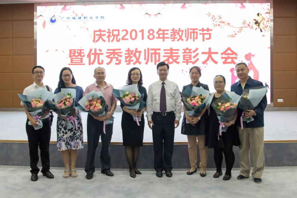 副校长李志强带领新教师进行入职宣誓;副校长周晖宣读了《表彰文件》。为了充分发挥榜样的力量,传递无穷的正能量,学校不仅表彰了校级“教学名师奖”、“师德标兵奖”、“优秀团队奖”,省级科技奖获得者、省级技能大赛优秀指导教师;还表彰了在全省竞争性评选中脱颖而出的广东省高等学校教学名师奖、广东省教育教学成果奖、南粤优秀教师奖获得者,执行董事张亚斌、校长蒋新华、督导专员莫火材分别为他们颁奖。随后马来西亚进修团代表罗朝宝、优秀团队代表李建华、师德标兵代表李锦泉、竞赛获奖指导教师代表邓飞、南粤优秀教师徐国莉等先后上台作了分享。