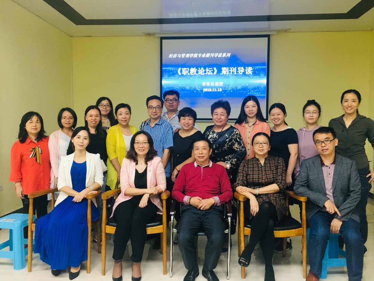 为进一步培养科研兴趣,提升中青年教师的科研能力,11月13日晚,城建大讲坛经济与管理学院专业期刊导读系列之四《职教论坛》在人文艺术楼教师发展中心举行,由覃常员教授担任主讲人。学校副校长、经管学院院长王媚莎,学校科技处处长鲁五一,学院副院长阚文婷、张珊,学院办公室主任刘昆,工商企业管理教研室全体老师、学院其他专业部分老师和人文学院部分老师参加了本次讲座。