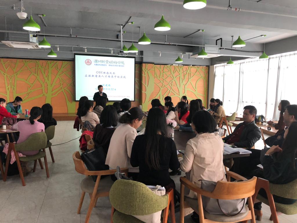 讲座上,刘教授对OBE理念及其在深职商英人才培养中的实践做了详细介绍,除了详解深职商英的“三能” 目标,BEC课程体系和4A教学设计等之外,还强调老师们要在教学中寻找提升科研的方法,教学改革推动科研提升,科研提升助力教学改改。讲座结束后,老师们纷纷感叹“城建大讲坛”这种“请进来”的学习方式让人收获良多。