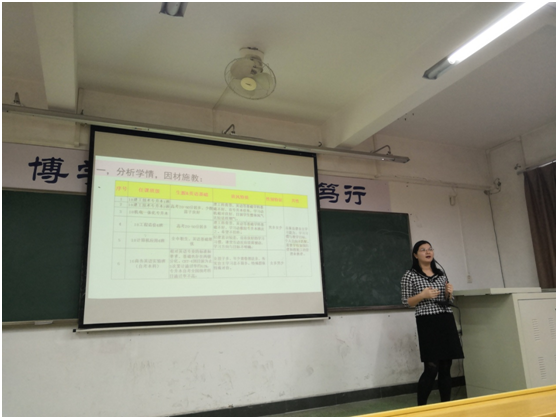 黄瑞娴老师结合本学期的授课内容,分别从教学目标,教学内容、教学活动、教学评价等四个方面作了详细的报告,重点强调了对学生课堂活动的跟进指导工作,真正打造以学生为中心的课堂。彭争老师根据课前认知与准备,课中管控执行,课后交流督促以及课后反思进行了分享,教学设计新颖,显示出教学的活力和魅力。