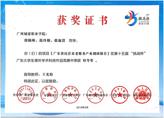 广州城建职业学院学生所获得的重要奖项