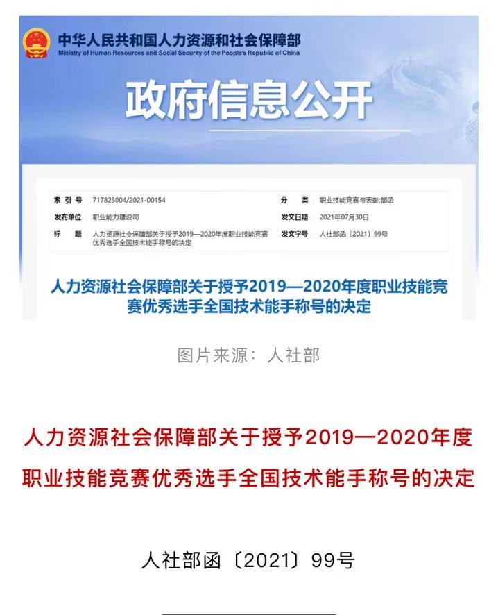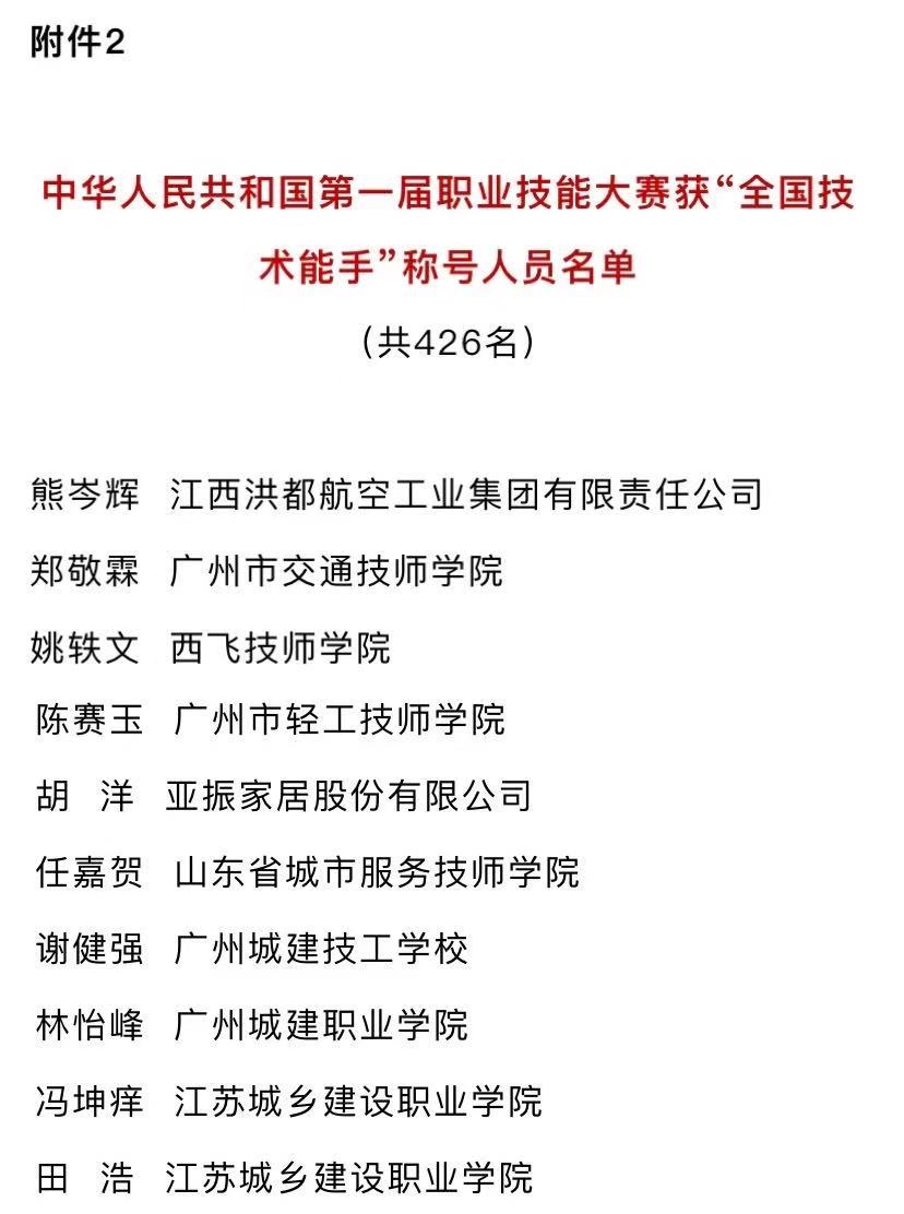 根据《人力资源社会保障部关于授予2019—2020年度职业技能竞赛优秀选手全国技术能手称号的决定》文件,广州城建学院建筑工程学院林怡峰荣获“全国技术能手”称号。