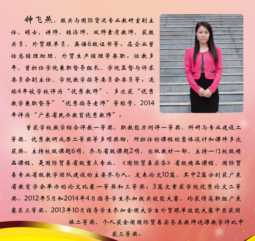 2015年校级教师楷模先进事迹简介-钟飞燕