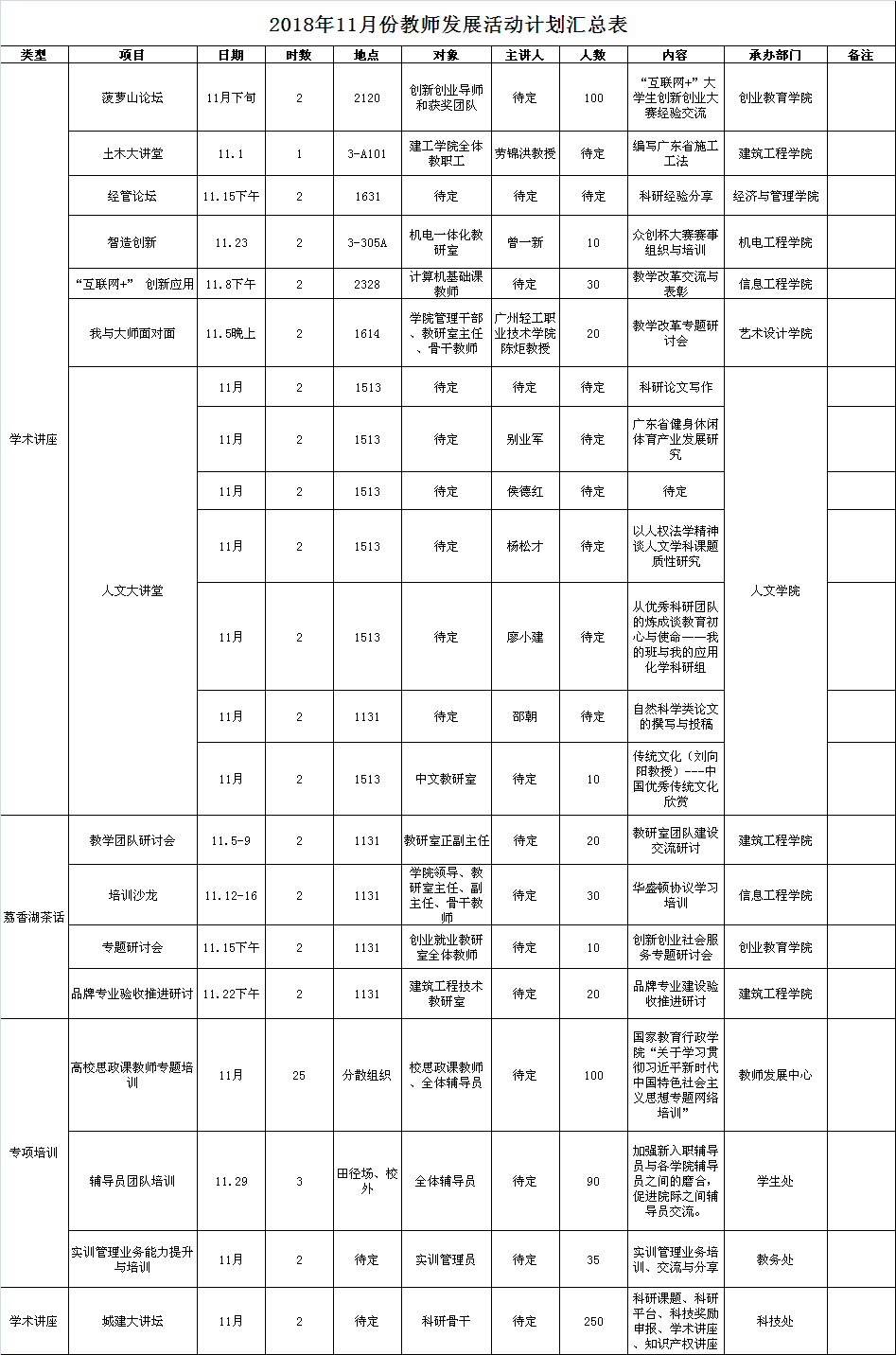 2018年11月份教师发展活动计划